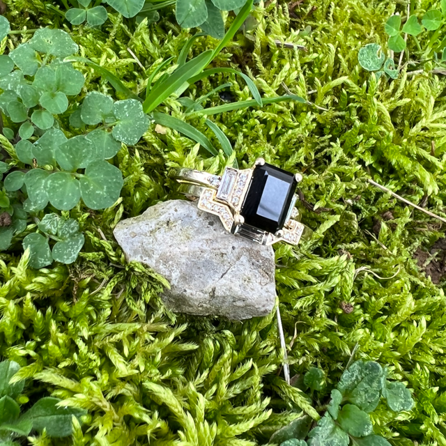 Inspired by the convergence of ancient Egyptian motifs and the styling of the art deco period, our Isadora ring set is undoubtedly a stunner! An emerald cut black onyx sits as the centerpiece of of this showstopping 14k gold ring stack. Pavé and baguette diamonds add elegance and flair for an overall dazzling effect. Make a statement with the Isadora, a truly unique set you're guaranteed to enjoy for years to come!